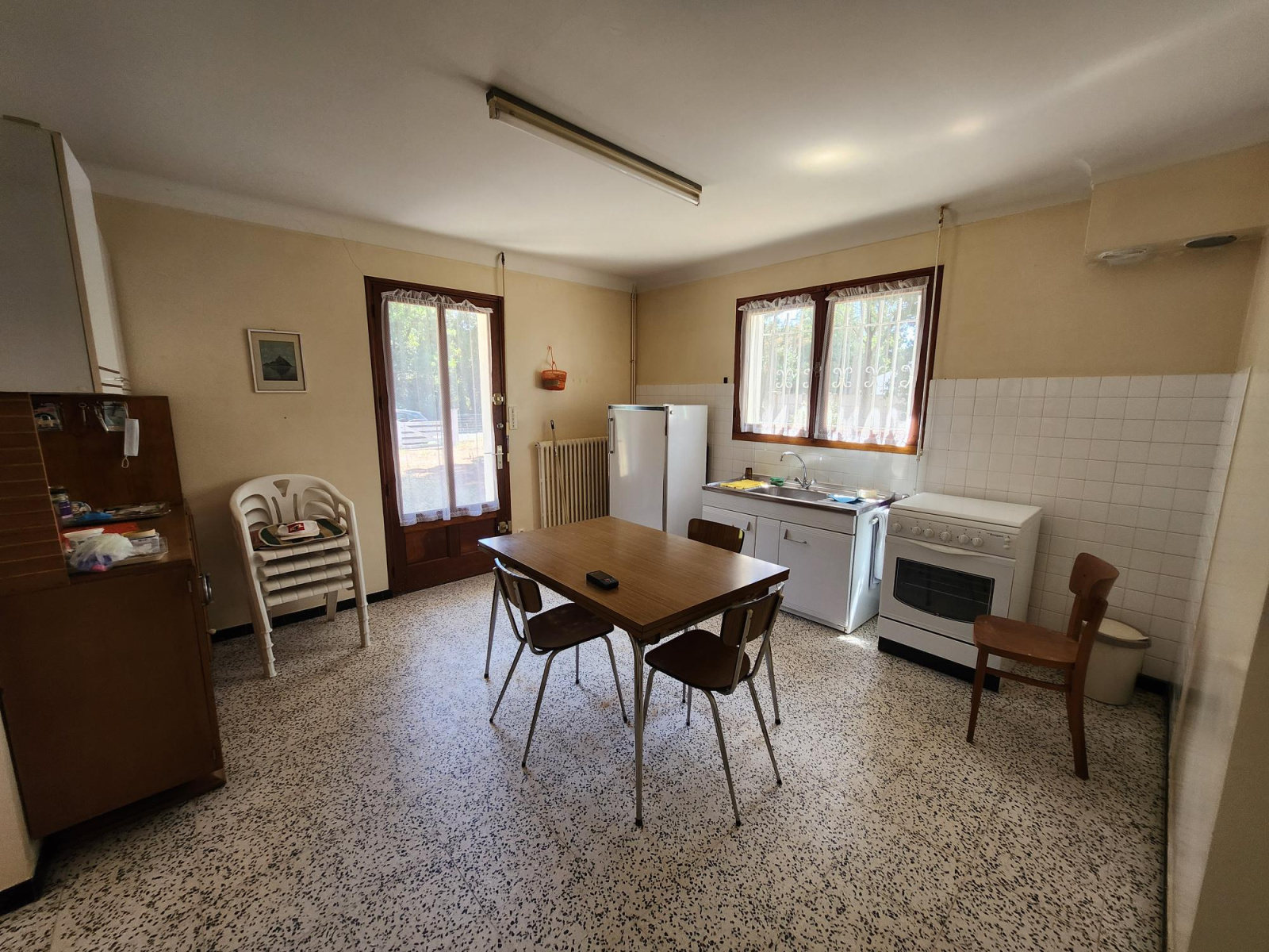 5km des plages, 5 mn des centres, accès par pistes cyclables, sur plus de 1000m² de terrain, excellente construction très saine avec séjour, vaste cuisine, deux chambres, bains, WC, garage, studio avec coin cuisine, salle d'eau, WC, chaufferie. elle a quelque chose !
