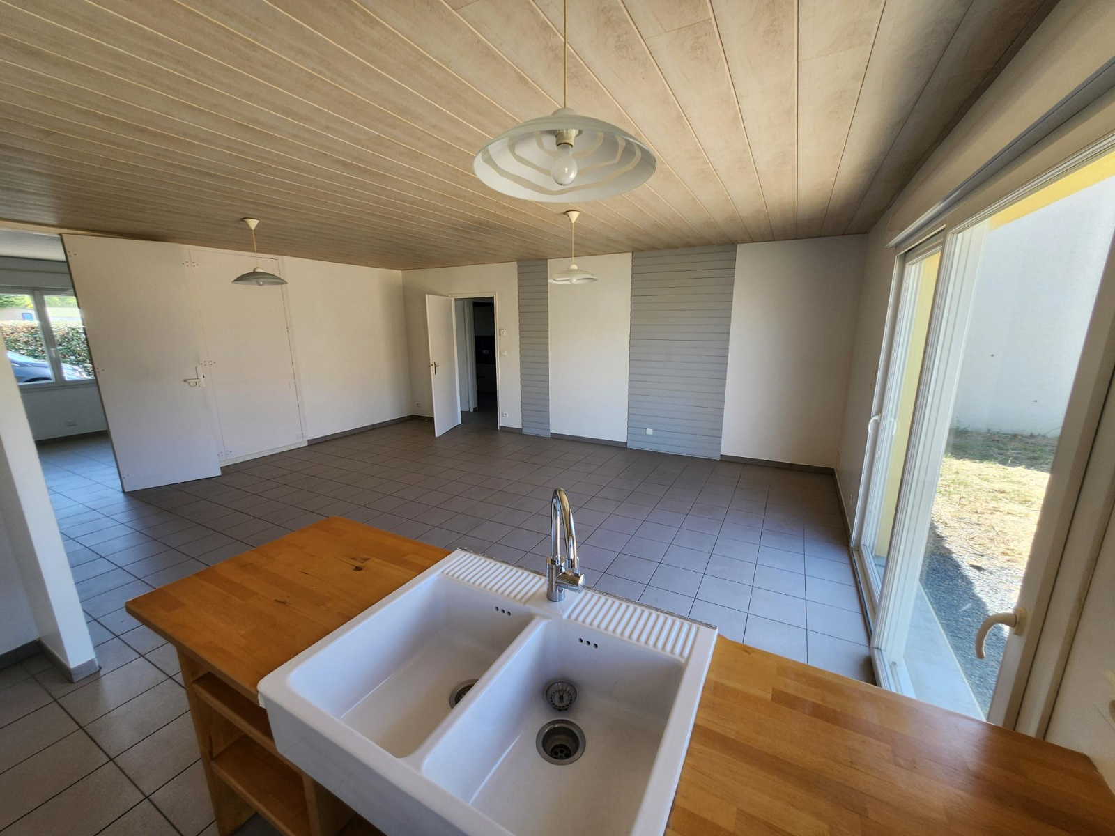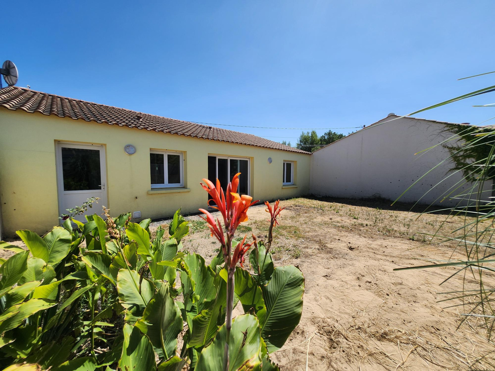 cette villa sur 350 m² offre 84 m² habitables + cellier et garage. confort électrique, chauffage au sol, volets roulants, elle se compose d'une vaste pièce de vie 40 m² avec cuisine ouverte, de trois chambres, salle d'eau, WC.
