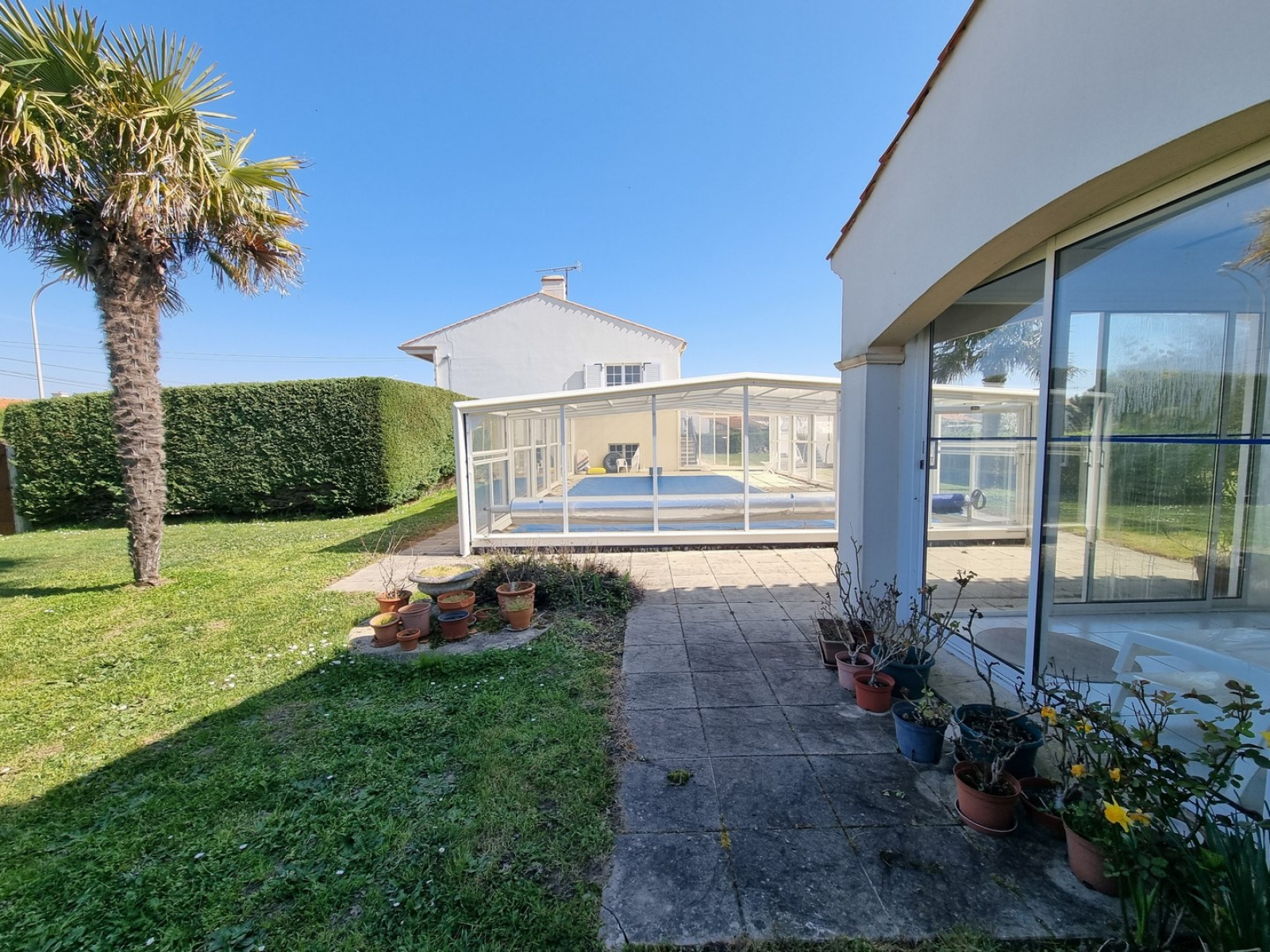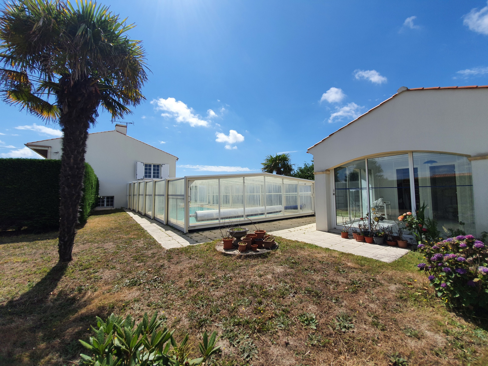 superbe propriété, quartier résidentiel calme et proche tous services, à 1,5 km des plages. bâtie sur près de 1000 m², cette excellente construction offre 3 chambres, une très belle pièce de vie, cuisine équipée, salle d'eau récente et toilettes ;