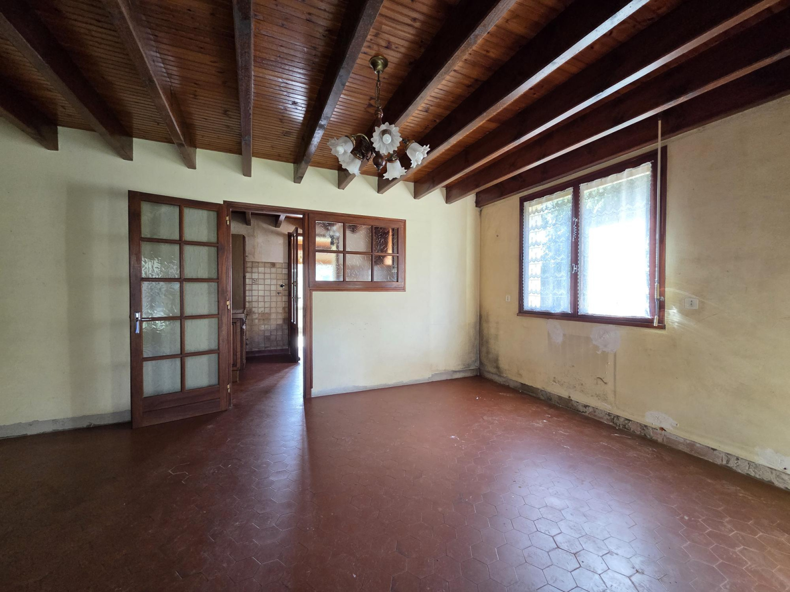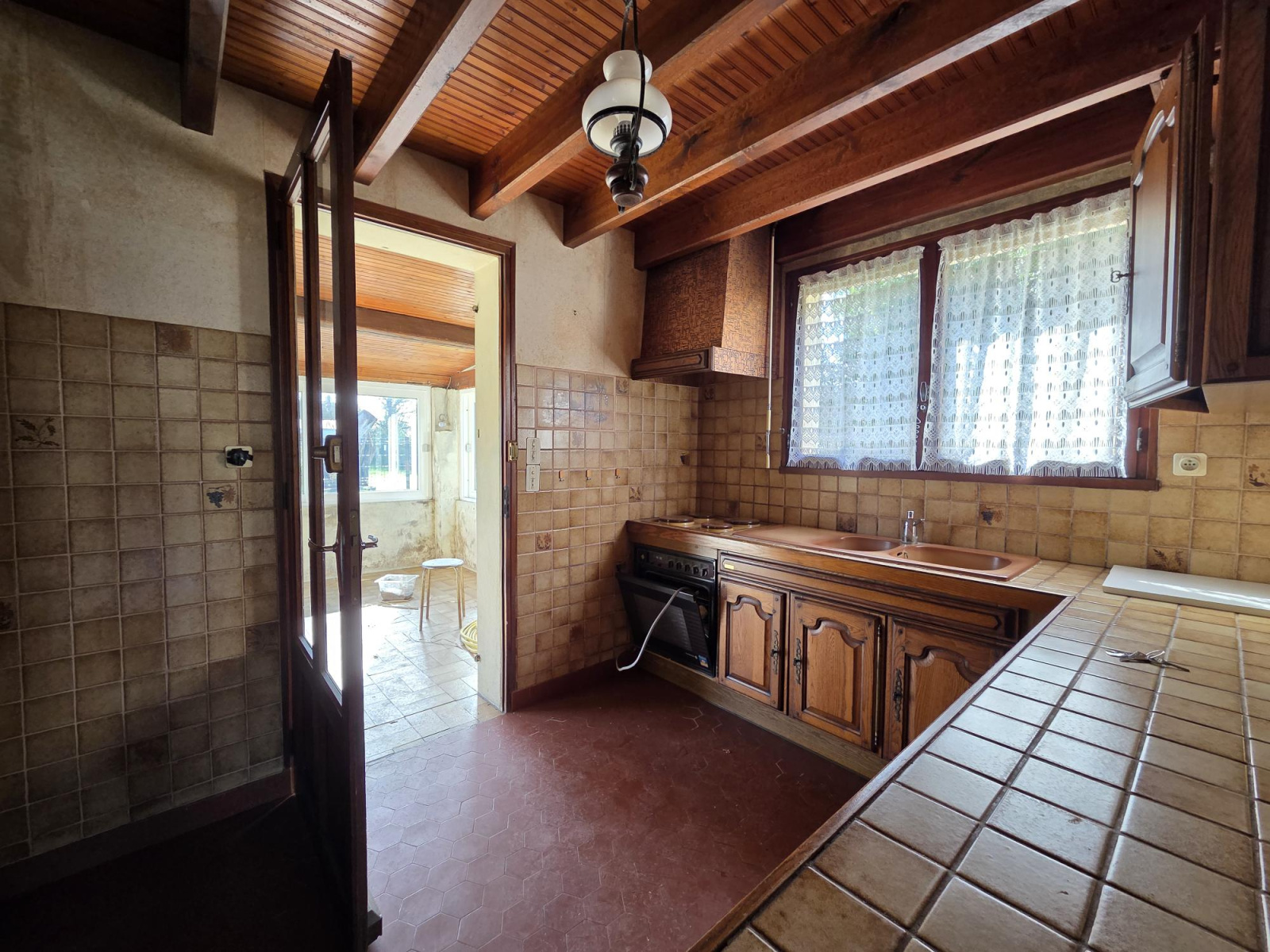 Sa composition : 2 chambres avec placards, cuisine, salon, véranda, sanitaire ( lavabo bidet ) + wc.