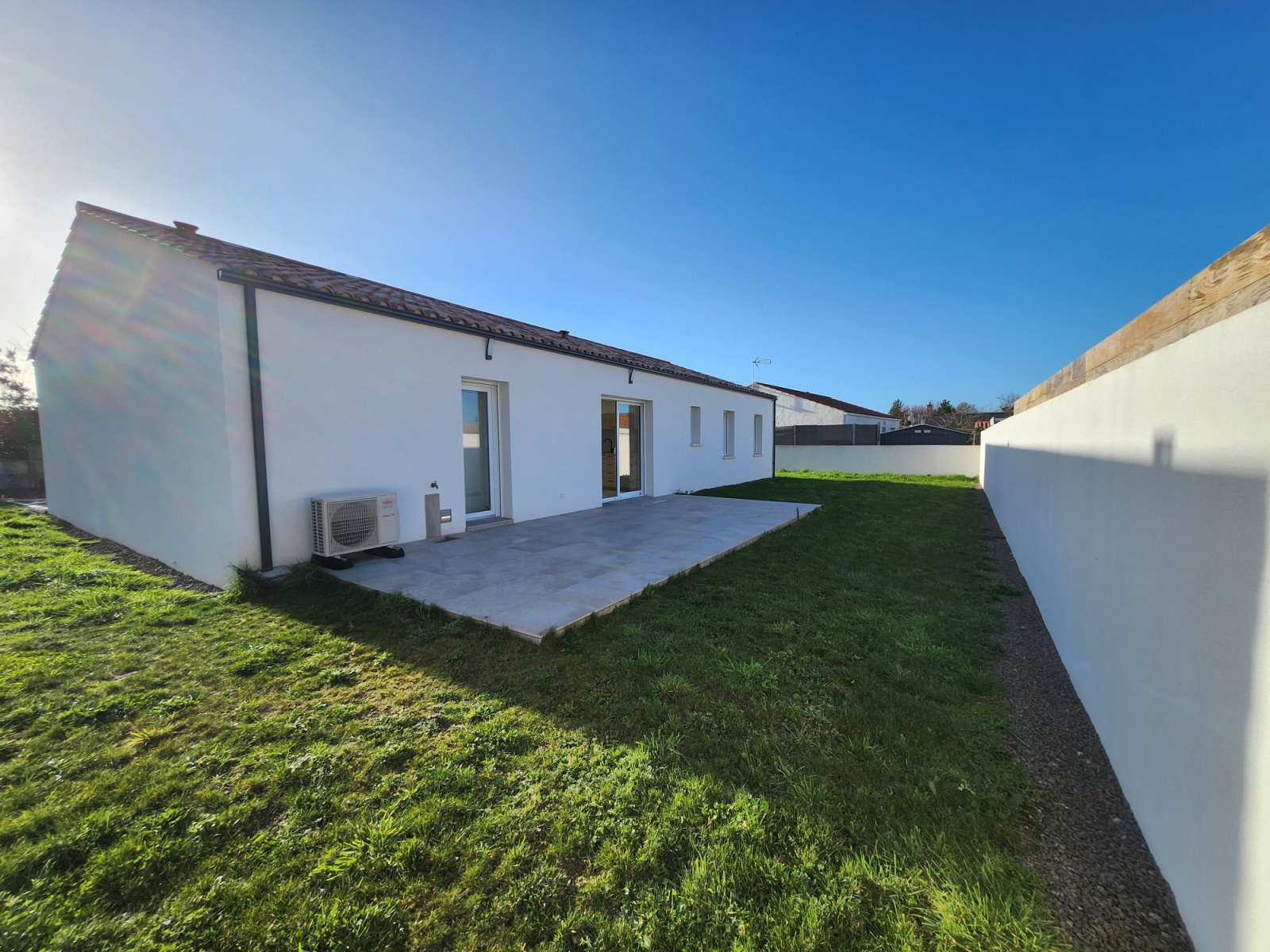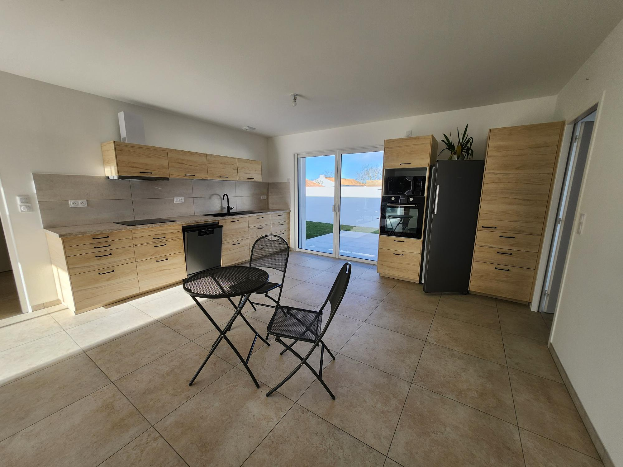 Notre-Dame-de-Riez "centre" avec commerces à proximité, très belle villa en état neuf achevée en 2024, offrant 110 m² habitables avec ses 4 chambres, pièce de vie avec cuisine ouverte équipée, cellier, 2 wc, salle d'eau et garage.